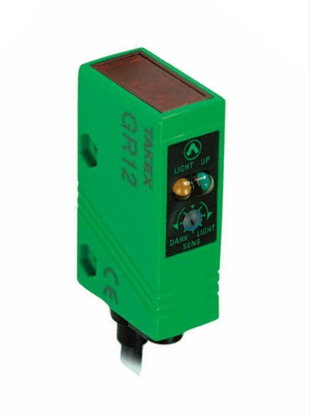 Mark sensor GR12WSN Takex. – Phương pháp phát hiện: Phản xạ giới hạn – Nguồn cấp: 12-24 VDC ±10% Ripple 10% max. – Dòng tiêu thụ: 30 mA max.